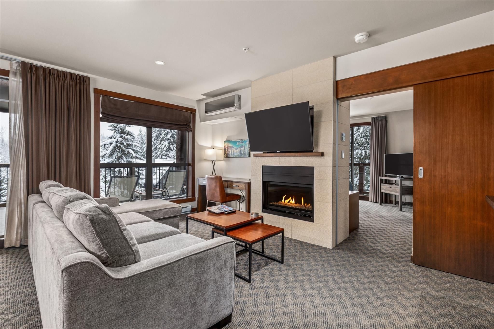 309B Evolution is a beautifully appointed corner suite offering quarter-share ownership in one of Whistler’s most sought-after resort residences. Steps away from the Creekside Gondola, it provides easy access to skiing, biking, and village amenities. Positioned at the end of the hallway and south-facing, the suite enjoys excellent natural light and Rainbow Mountain views. An oversized private wraparound balcony features an outdoor fireplace and lounge seating. Inside, the suite is well-equipped with a full kitchen and in-suite laundry. Evolution's resort-style amenities include a heated outdoor pool, hot tubs, sauna, steam room, fitness centre, games and media rooms, ski and bike storage, and underground parking. Ownership includes one usage week per month. Monthly fees cover all costs.