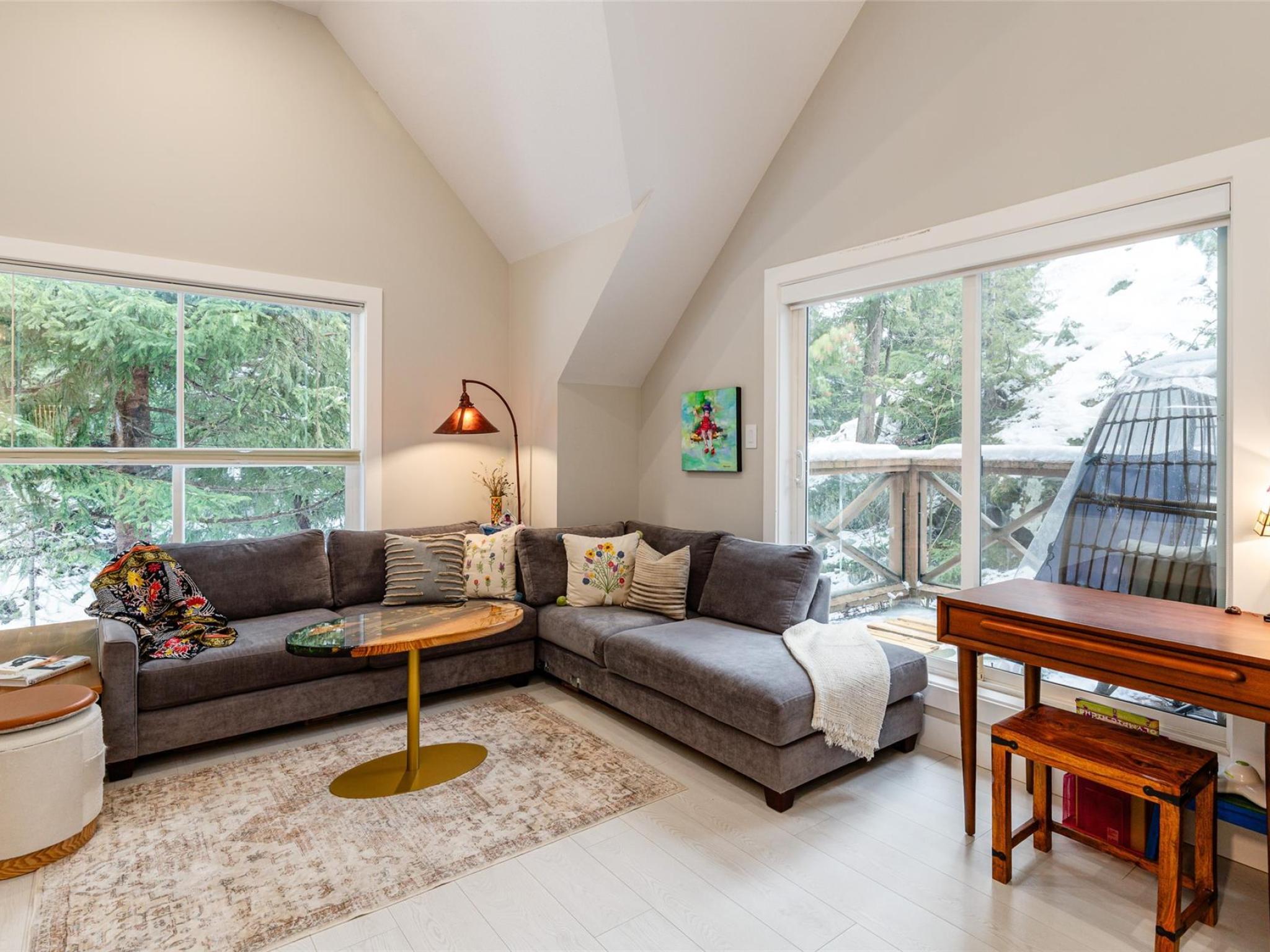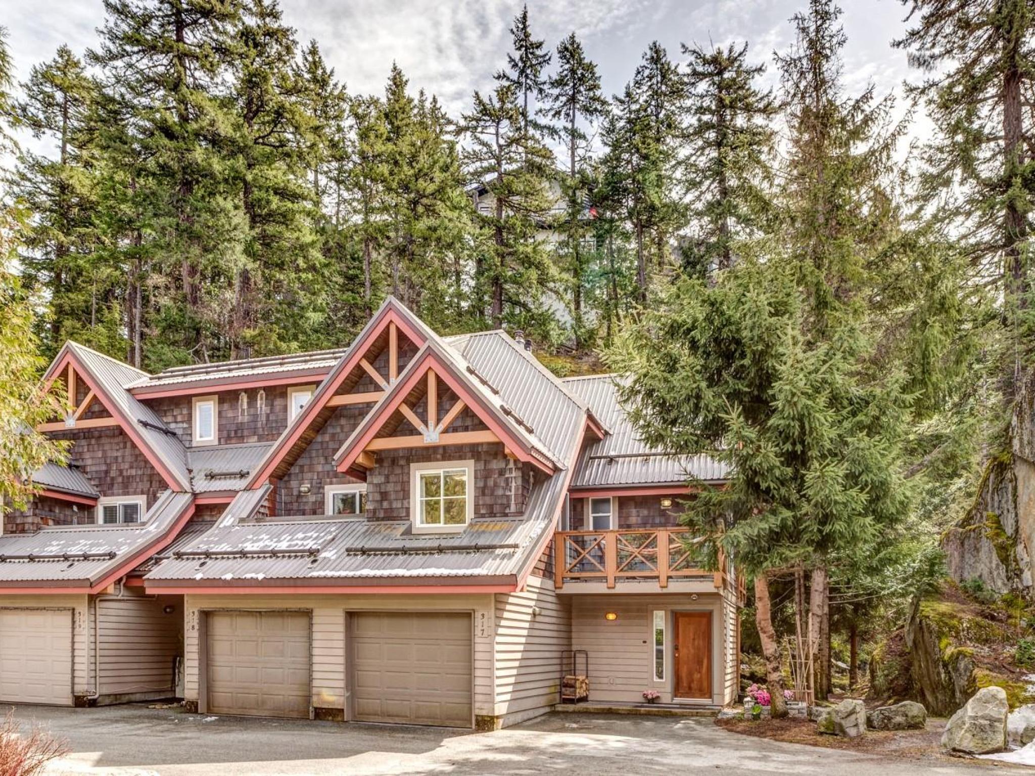 Welcome to this light-filled end-unit townhome in sought-after Castle Estates, perfectly positioned between Whistler Village and Creekside. Set in a private location on a quiet cul-de-sac and backing onto serene forest, the home also features a lovely outdoor garden and a direct walkway out back to Whistler Road, offering easy walking access to Creekside. The thoughtfully designed two-level layout includes an upstairs bedroom, plus an upper main living area with vaulted ceilings, an open-concept kitchen and living space, a full bathroom, and two decks ideal for outdoor enjoyment. The entry level offers an additional bedroom, ensuite with steam shower, a private patio, laundry, and a fully upgraded garage with new flooring, storage cabinetry, and slatwall panels. A 2020 renovation introduced hardwood floors, custom tile and millwork and stainless steel appliances. Perfect for full-time living or a weekend retreat.