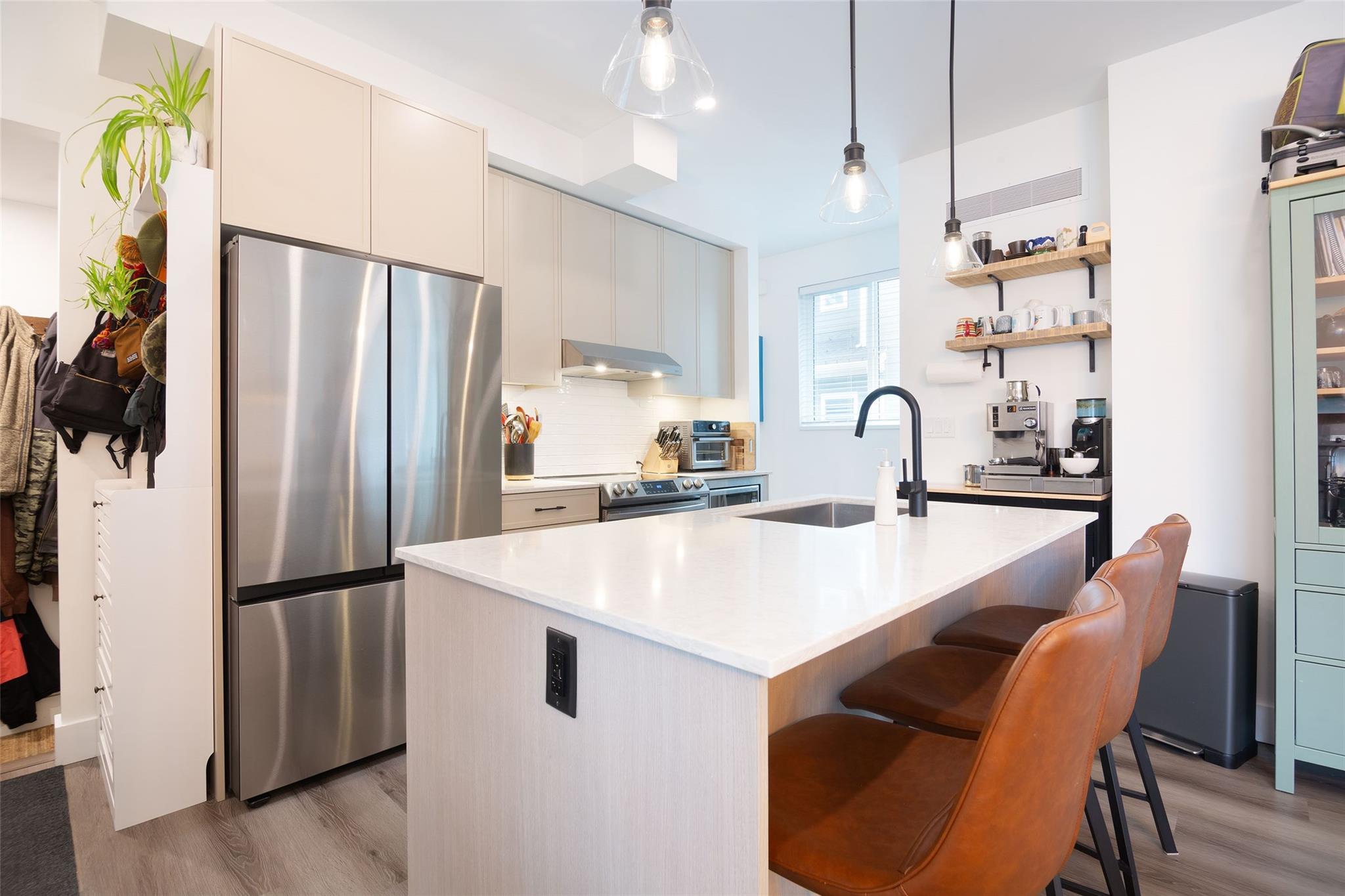 This west-facing 3-bedroom, 2.5-bathroom end-unit townhome offers a blend of modern living, small-town charm, and year-round mountain adventure. With desirable Arbutus Street access, this home feels bright and inviting from the moment you arrive. The open-concept main level is made for connection, whether you’re hosting friends après-adventure or enjoying a quiet evening at home. The modern kitchen features quartz countertops, stainless steel appliances, and seamless flow into the dining and living areas. Step outside to enjoy both a large front porch and a private back deck, perfect for morning coffee and evening BBQs. Built with comfort in mind, this home includes heated bathroom floors and individual thermostats for custom heating and cooling in every room. Upstairs, all three bedrooms offer privacy and function. The spacious primary retreat features a walk-in closet, a flex space ideal for a home office, and a beautifully appointed ensuite. The attached double garage provides room for two vehicles plus additional storage for bikes, skis, and all your mountain gear. The potential for EV charging will future-proof your lifestyle. Mountainside places you steps from everything, walk to schools, the rec center, cafes, restaurants, and shops. The trails, rivers, and surrounding peaks are at your doorstep.