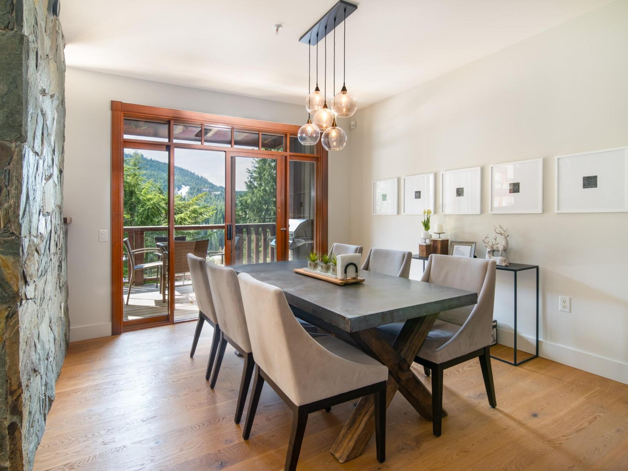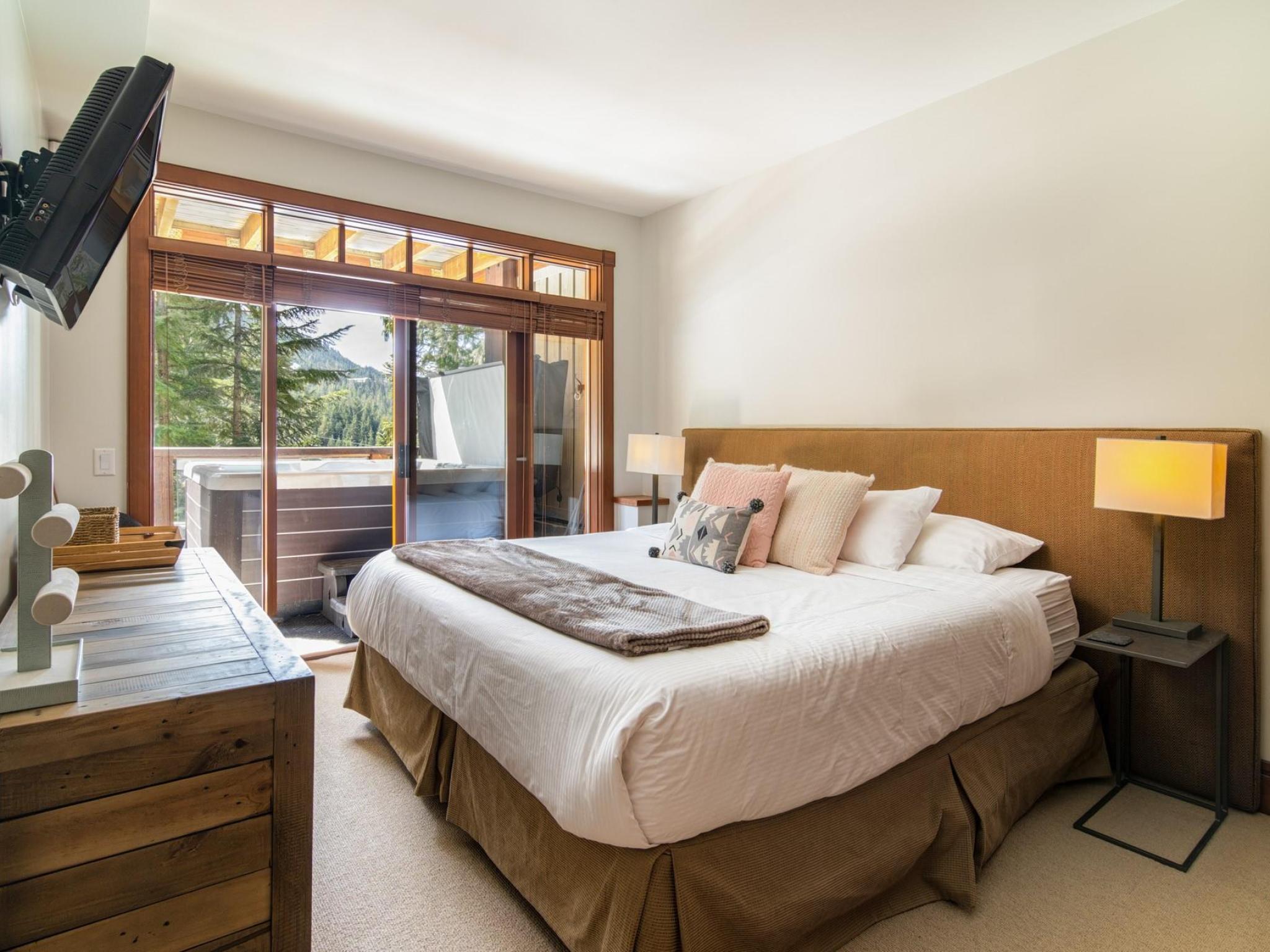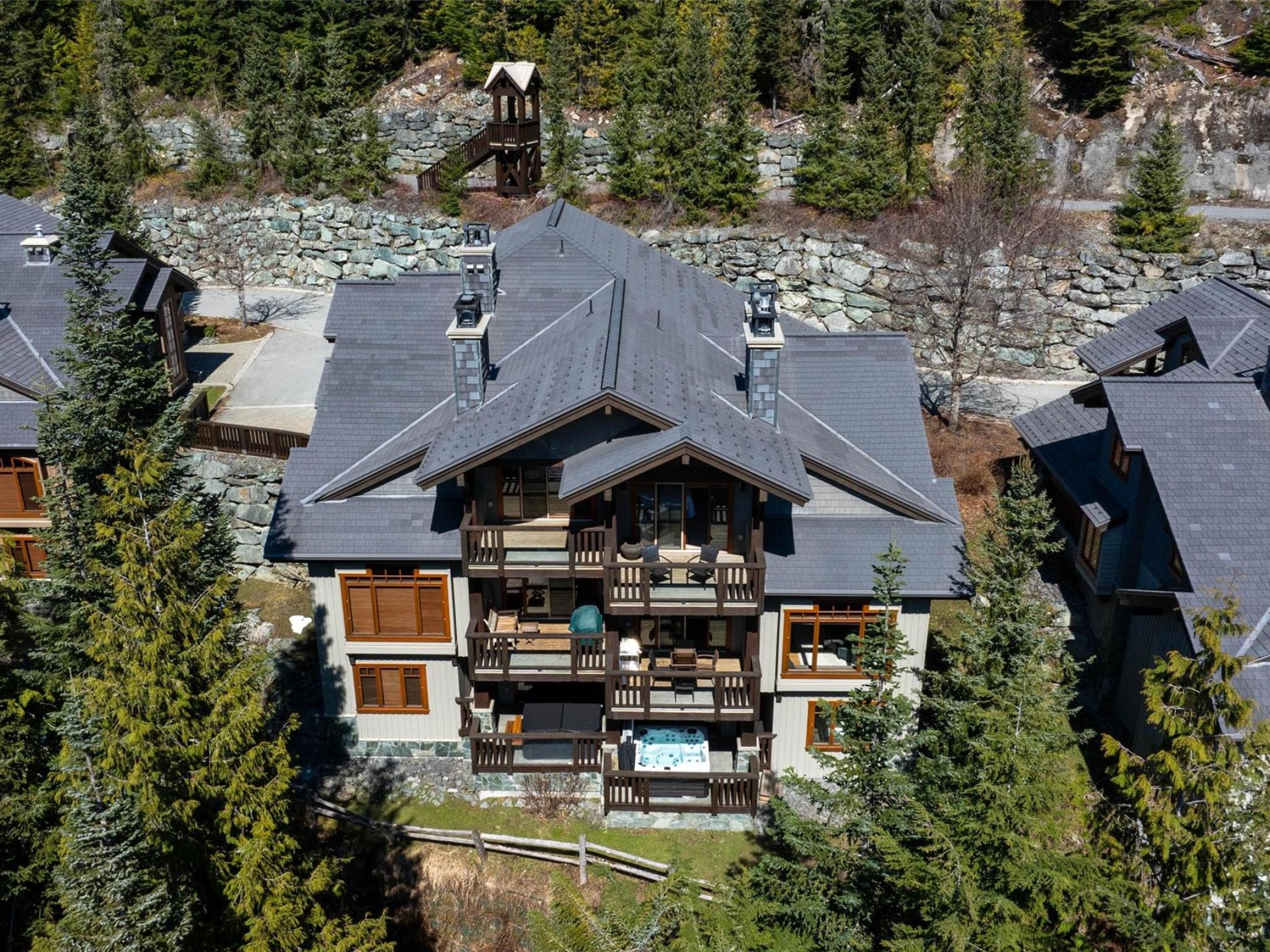 Perched on the side of Whistler Mountain, this stunning 4-bedroom, 2.5-bathroom townhome offers true ski-in/ski-out access and breathtaking views of Whistler's peak. Welcome to the pinnacle of mountain living at 8 Lookout at Taluswood. This beautifully appointed mountain retreat features an open-concept main floor with vaulted ceilings, hardwood flooring, heated tile in key areas, and a chef's kitchen outfitted with granite countertops, a Thermador gas range, and a Sub-Zero refrigerator. Perfect for entertaining, the living space opens onto three private decks - including one with your own private hot tub, ideal for relaxing after a day on the slopes. Upstairs, the spacious primary suite offers a walk-in closet, a luxurious soaker tub, and a separate glass shower. With unlimited owner use in a nightly rental zone, this property offers the flexibility to enjoy personally or generate rental revenue. Experience elevated mountain living at its finest. No GST.