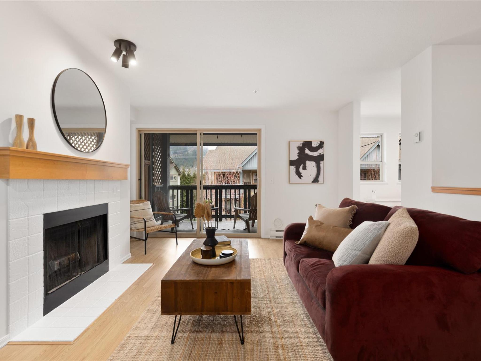 Bright, airy, and spacious 1-bedroom plus den in Mountain Trails, just off Portage Road with easy walkable access to all Village amenities. This top-floor home overlooks a quiet courtyard and captures stunning Mount Currie views. Enjoy year-round comfort with a shaded patio for summer airflow and a cozy wood-burning fireplace for winter. Fresh paint throughout, a recently updated hot water tank, and a new dishwasher add everyday ease. Features include in-suite laundry, a walk-in closet, pantry, and an oversized covered parking space. A fantastic opportunity to enter the Pemberton market.