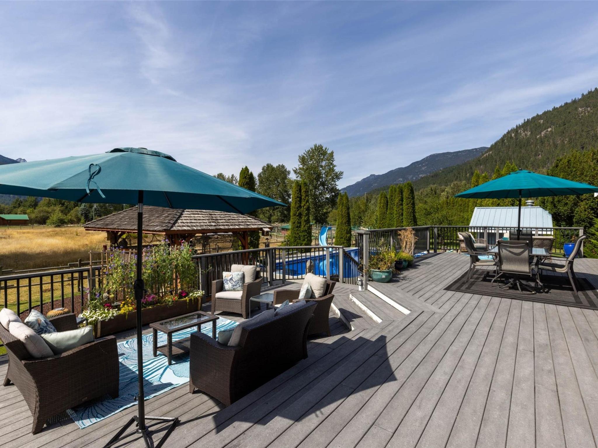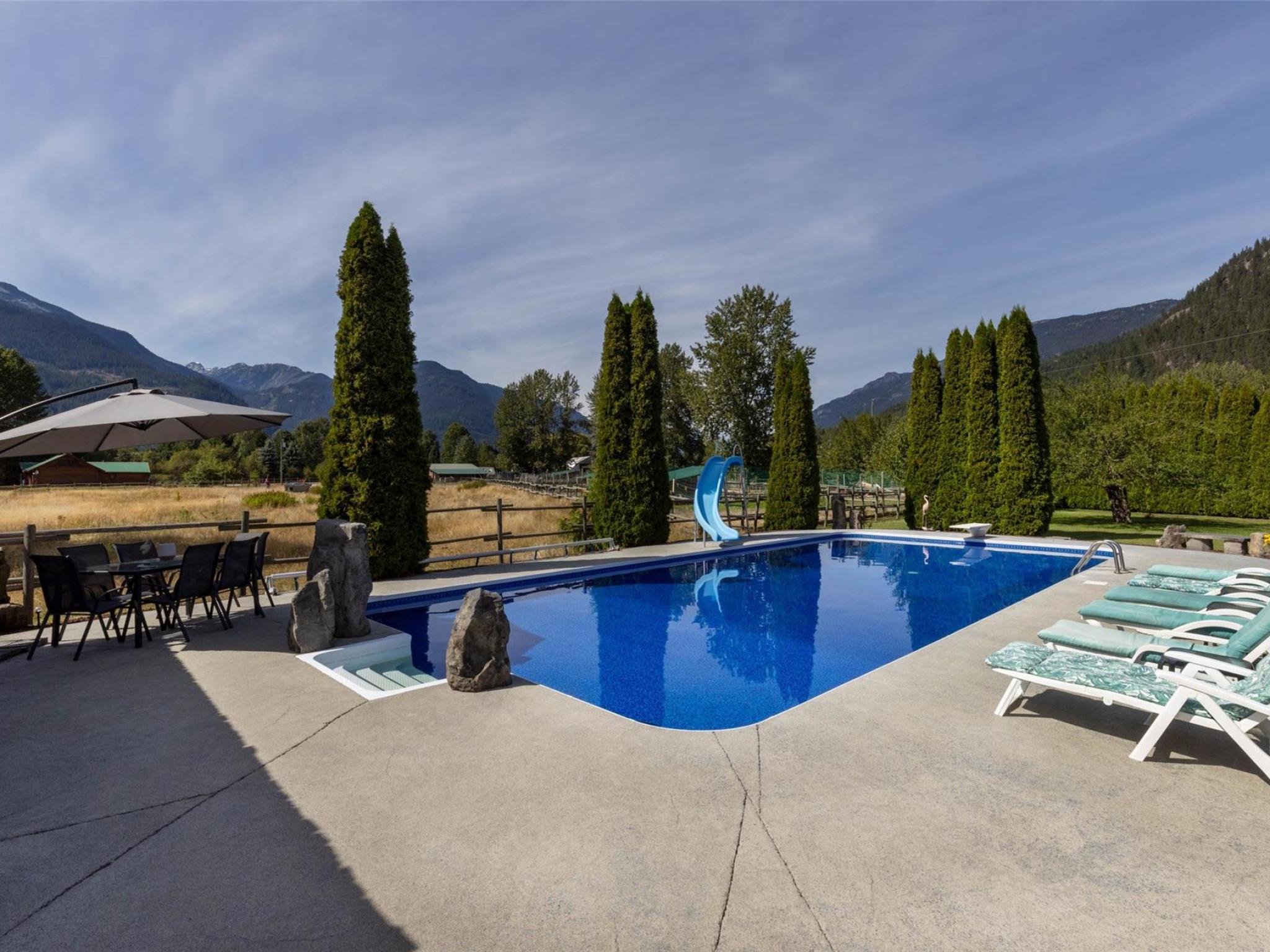 Welcome to your Pemberton oasis on Oberson Road, where space, sun, and stunning mountain views come together in one incredible, extremely well maintained property. This versatile 4-bedroom home with a separate 1-bedroom suite offers flexibility for families, guests, or rental income, all just minutes from town. Step outside and you’ll find a true backyard retreat. The large in-ground pool is the centerpiece of the beautifully landscaped and irrigated yard, complete with a charming tiki bar, two generous sun decks, and plenty of space to relax or entertain. Mature cherry and plum trees add to the property’s appeal, while a big garden shed and ample parking and storage make everyday living easy. Inside, the home is designed for comfort year-round with a heat pump providing efficient heating and air conditioning, plus a backup furnace for peace of mind. Enjoy excellent sun exposure throughout the day and take in breathtaking mountain views in every direction—including the peaceful sight of horses grazing next door. A rare blend of lifestyle, income potential, and outdoor living in one of Pemberton’s most desirable locations.