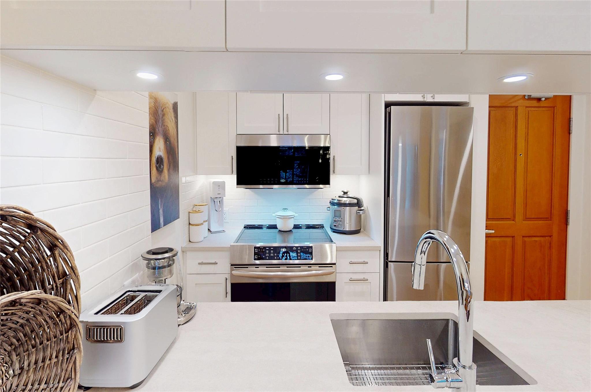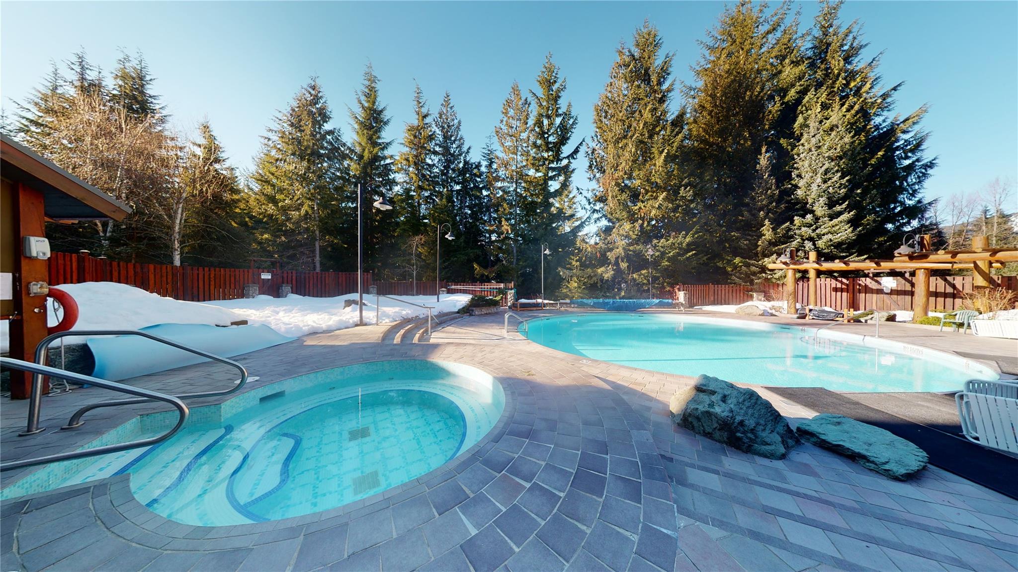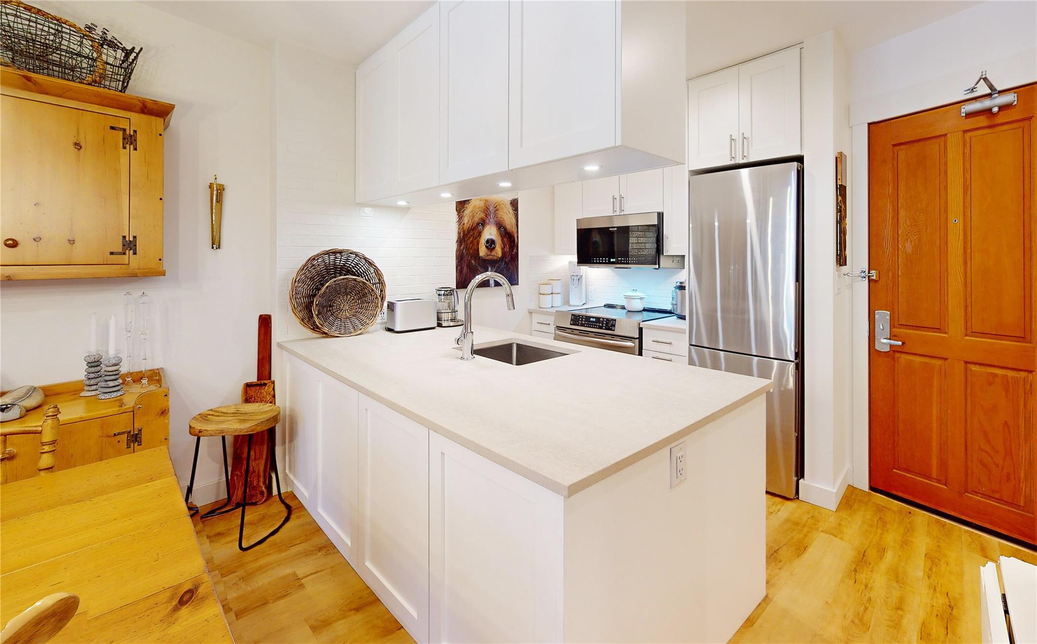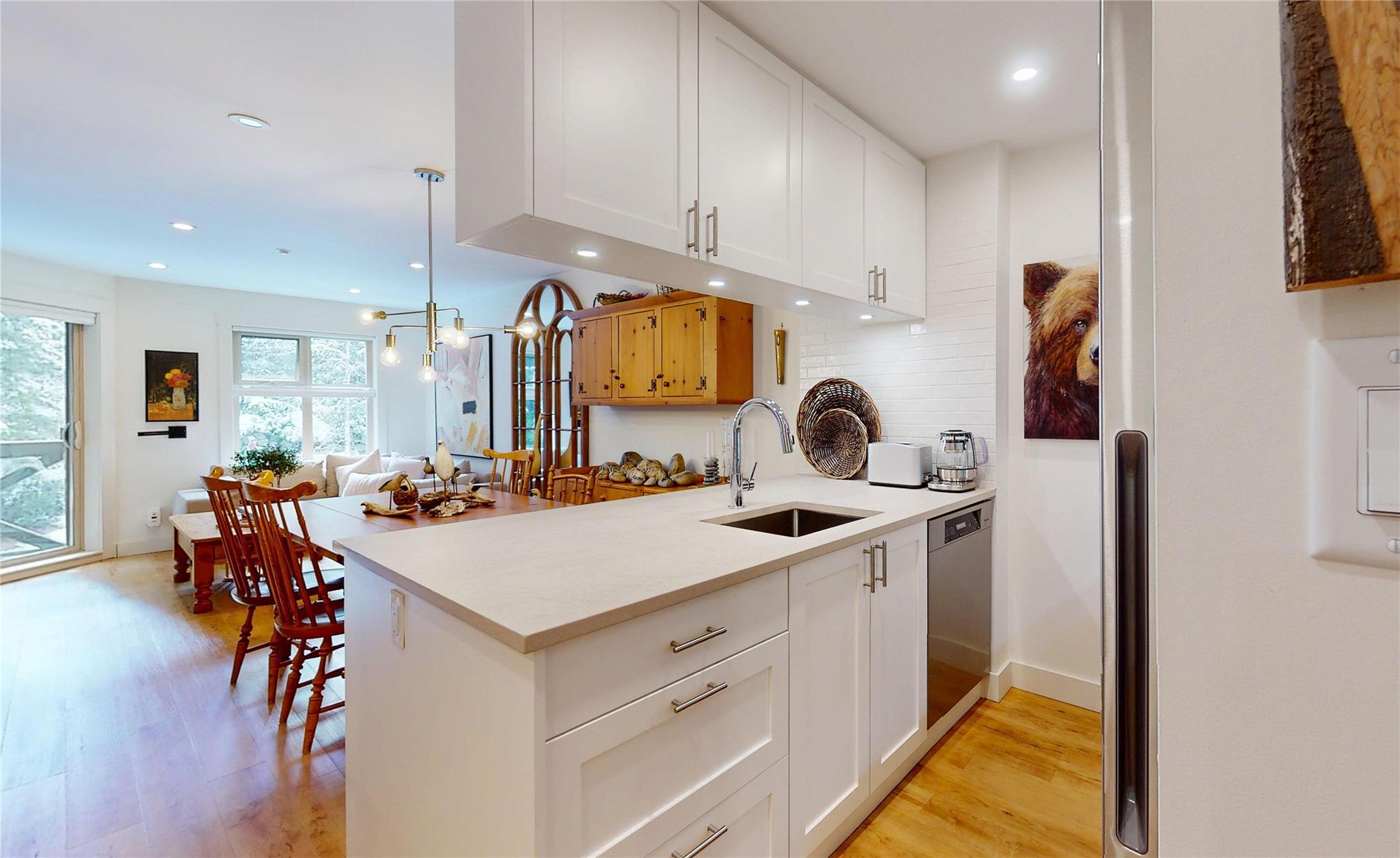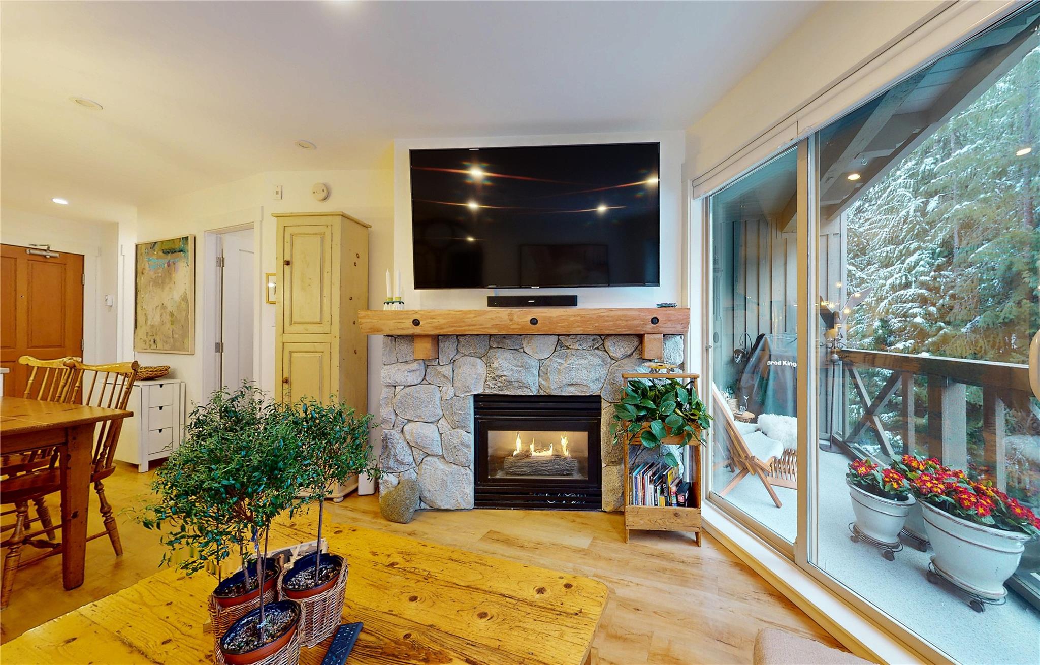 Welcome to this charming 1-bedroom condo in Lost Lake Lodge! Thoughtfully renovated, this cozy home offers an inviting atmosphere with high-end finishes. Wood flooring in living areas and bedroom, complemented by underfloor heated tiles in the bathroom. The kitchen boasts high end appliances, including Miele dishwasher Frigidaire induction stove, convection oven, microwave and Miele washer and dryer. The bedroom has custom-built California Closets, maximizing space and organization. The bright living area features a gas fireplace and access to a private patio. Lost Lake Lodge has fantastic amenities, including a front desk, outdoor pool, hot tub, fitness room, ski lockers, secure underground parking and easy access to skiing, biking, and Lost Lake trails.