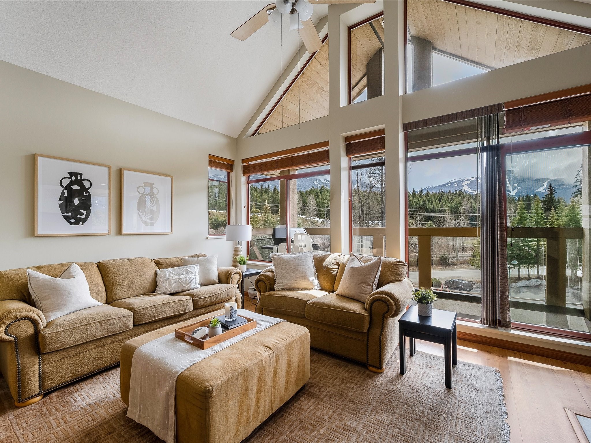 Perched on the top floor of the Nicklaus North Clubhouse, this bright and airy residence welcomes the day with warm morning light and closes it with the alpenglow of surrounding glaciers. Whether indoors or out, you’ll enjoy stunning natural views through expansive windows, a vaulted ceiling, and a balcony perfect for soaking in the scenery. The thoughtful floor plan offers excellent privacy, with two bedrooms separated by an open-concept kitchen, dining, and living area—ideal for relaxing or entertaining. Just steps away, enjoy all that Nicklaus North Golf Course has to offer: a full-service restaurant, a cozy lounge, vibrant patio dining, and world-class golfing. For those seeking adventure or convenience, Harbour Air’s nearby floatplane service offers a scenic getaway or quick connection. Zoned for short-term rentals, this property is a versatile option—perfect as a full-time residence, weekend retreat, or investment opportunity. This is a must-see for golf lovers, Nordic skiers, hikers, bikers, or anyone who appreciates Whistler’s lifestyle surrounded by nature. No GST.